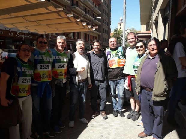 Fernando Lizarbe junto a otros Geroa Bai-kides en el acto final de la Korrika, realizado en Iruña