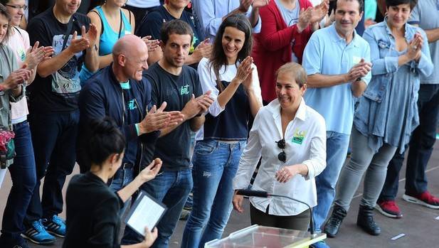 Uxue Barkos al momento de su toma de posesión como Presidenta de Navarra. Fuente: Parlamento de Navarra