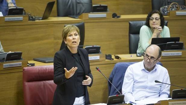 Uxue Barkos, durante una intervención en el Parlamento de Navarra. Fuente: Noticias de Navarra