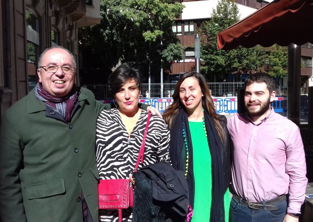 Integrantes de Geroa Bai Argentina, en Iruña junto con María Solana